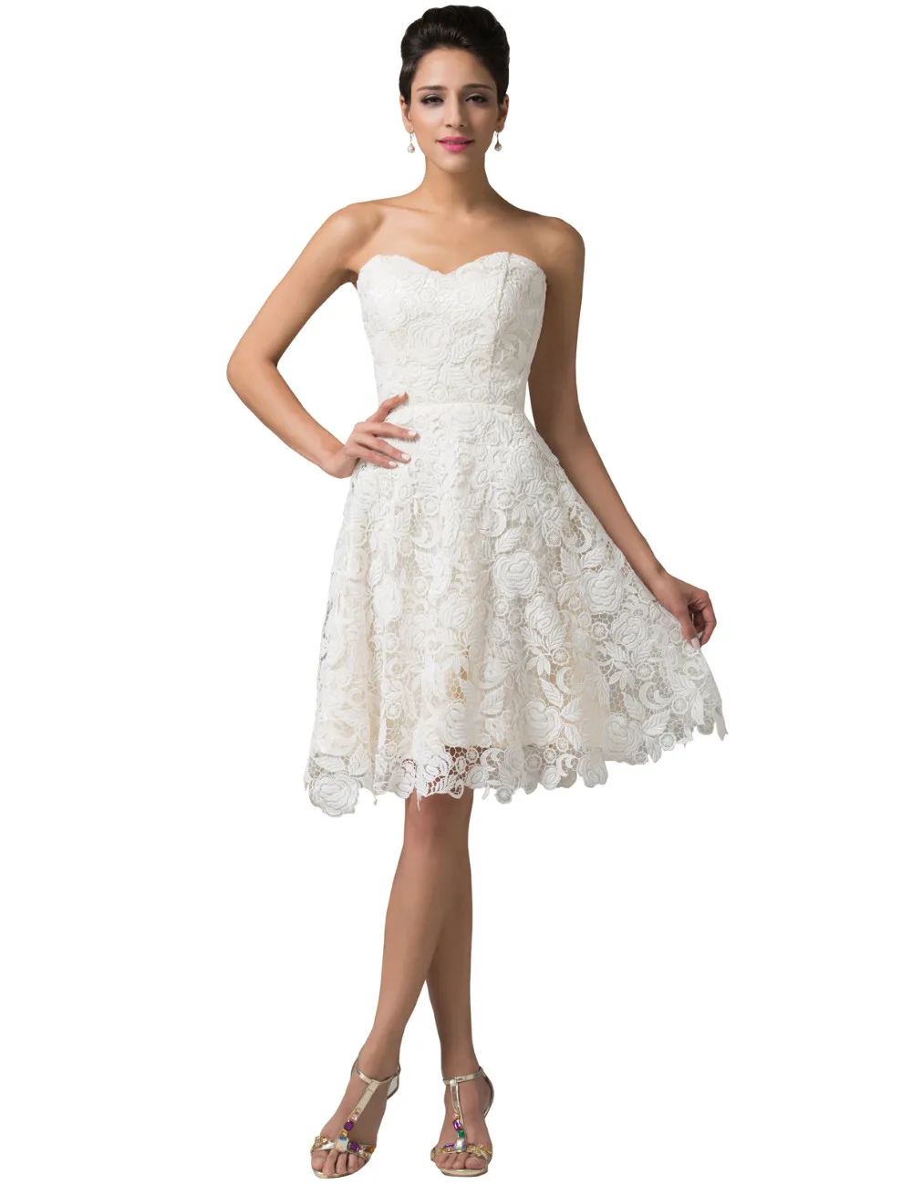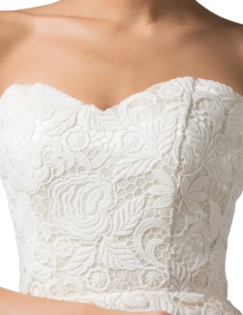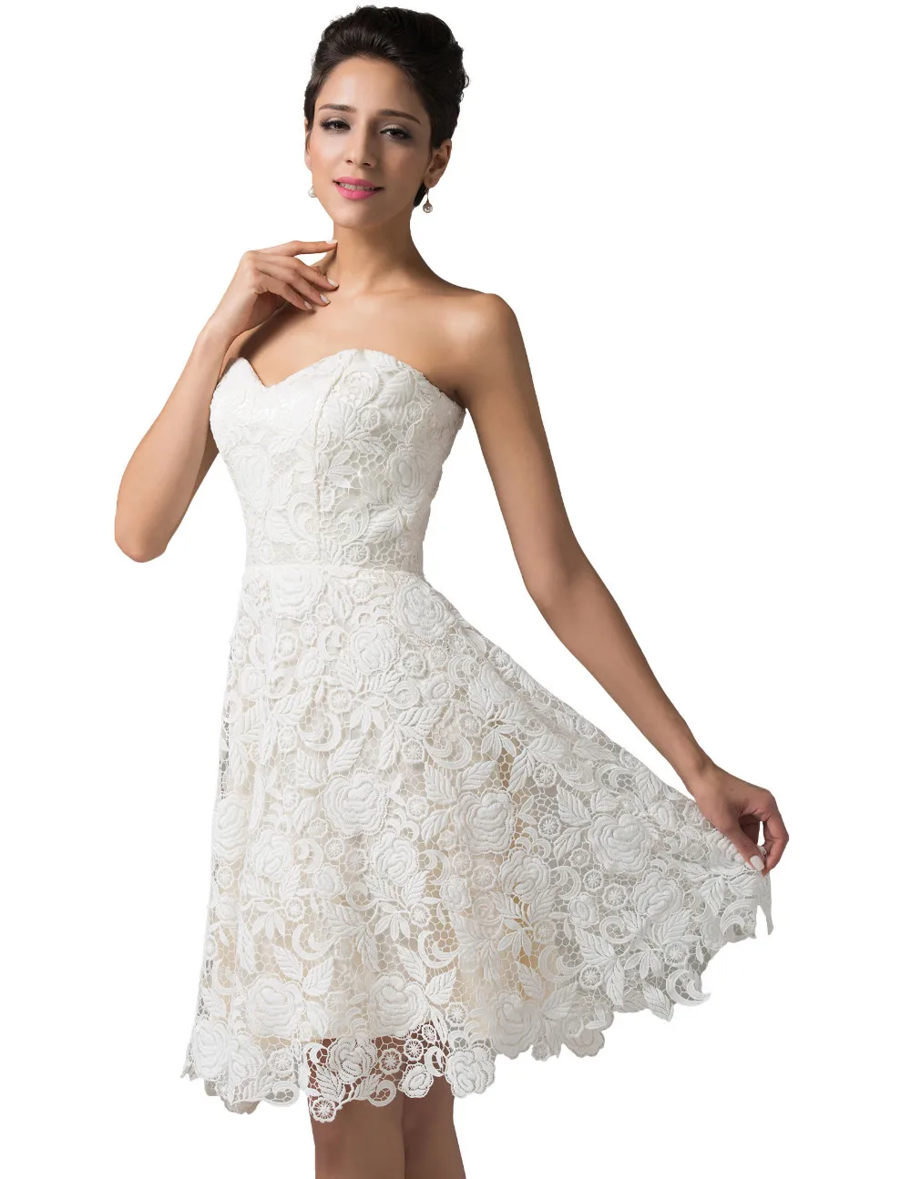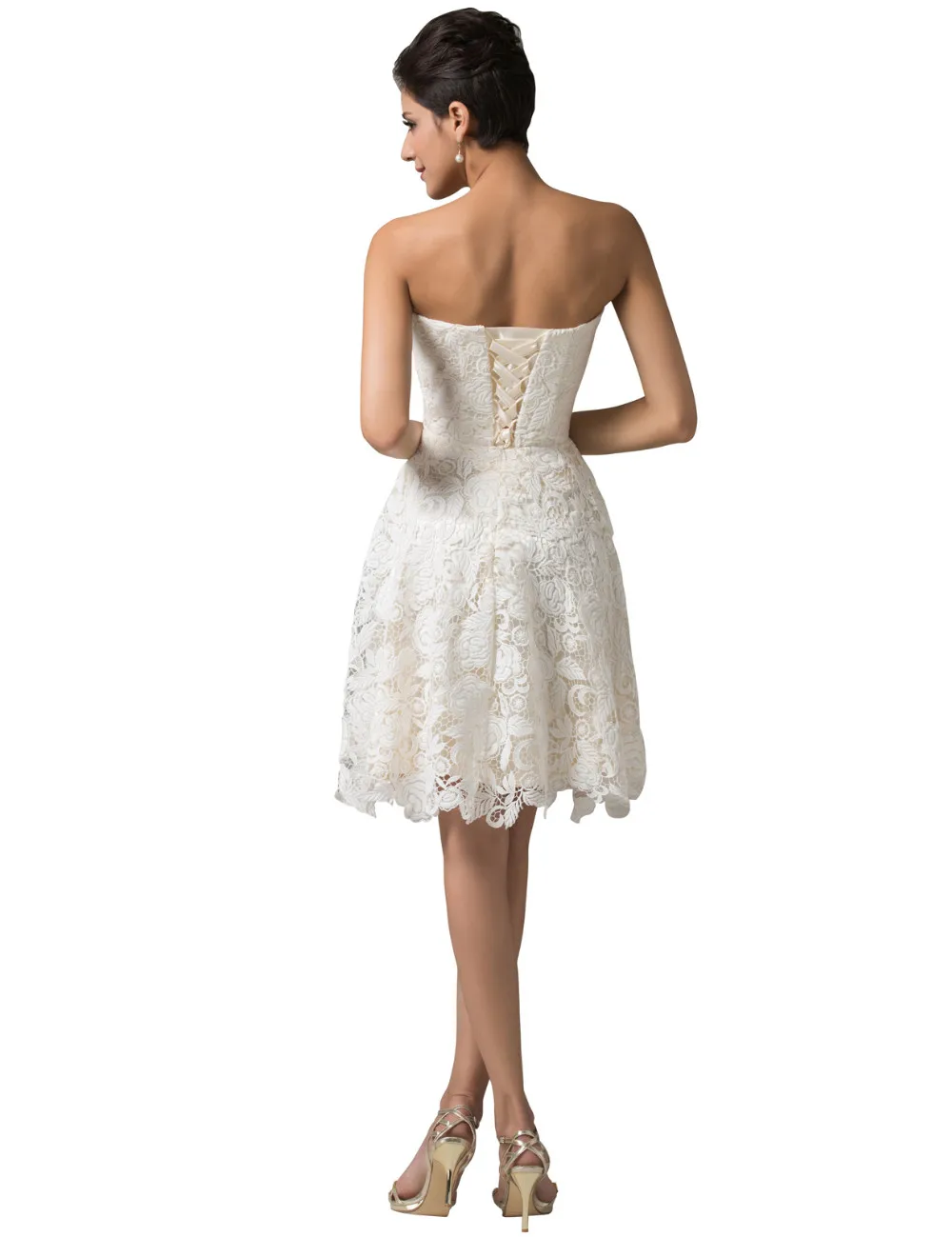שמלת ברך תחרה לנשים, סטרפלס בצבע שנהב, עם בטנה, מדהימה.