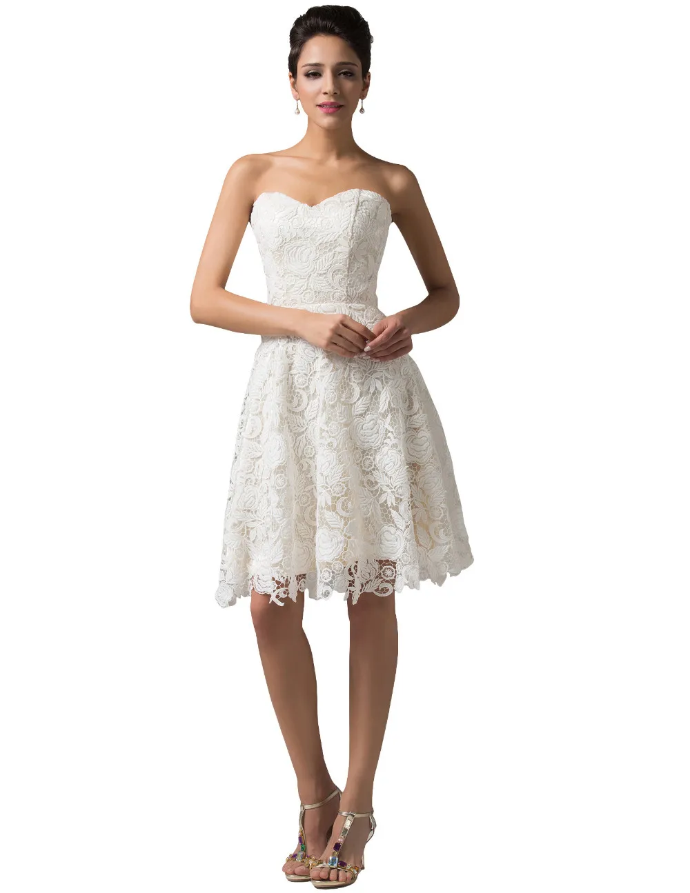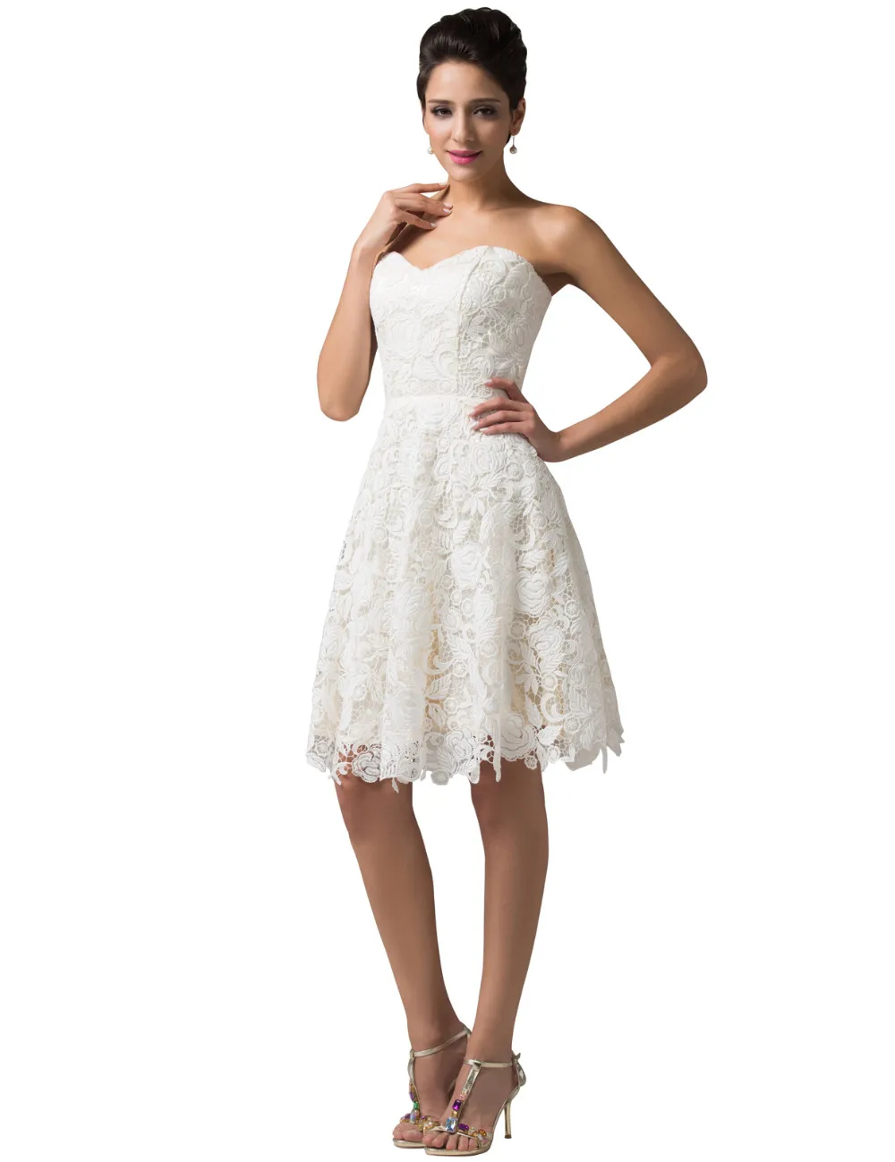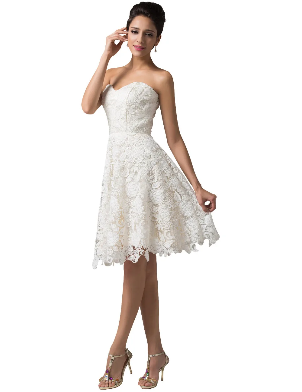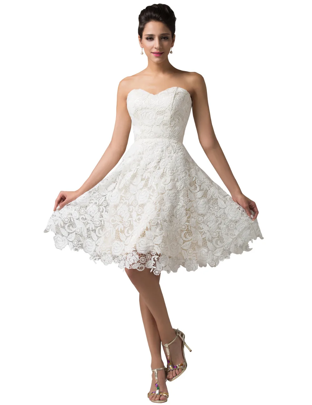 שמלת ברך תחרה לנשים, סטרפלס בצבע שנהב, עם בטנה, מדהימה.
