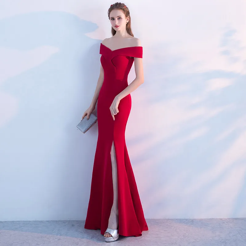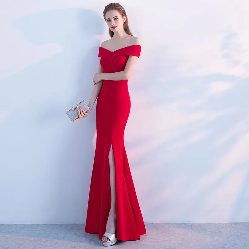 שמלת בת ים לנשים אלגנטית סטרפלס אורך רצפה עם פיצול ברגל. אופנתית ומרשימה