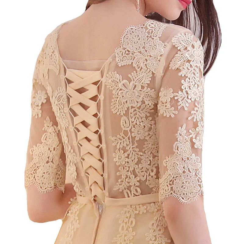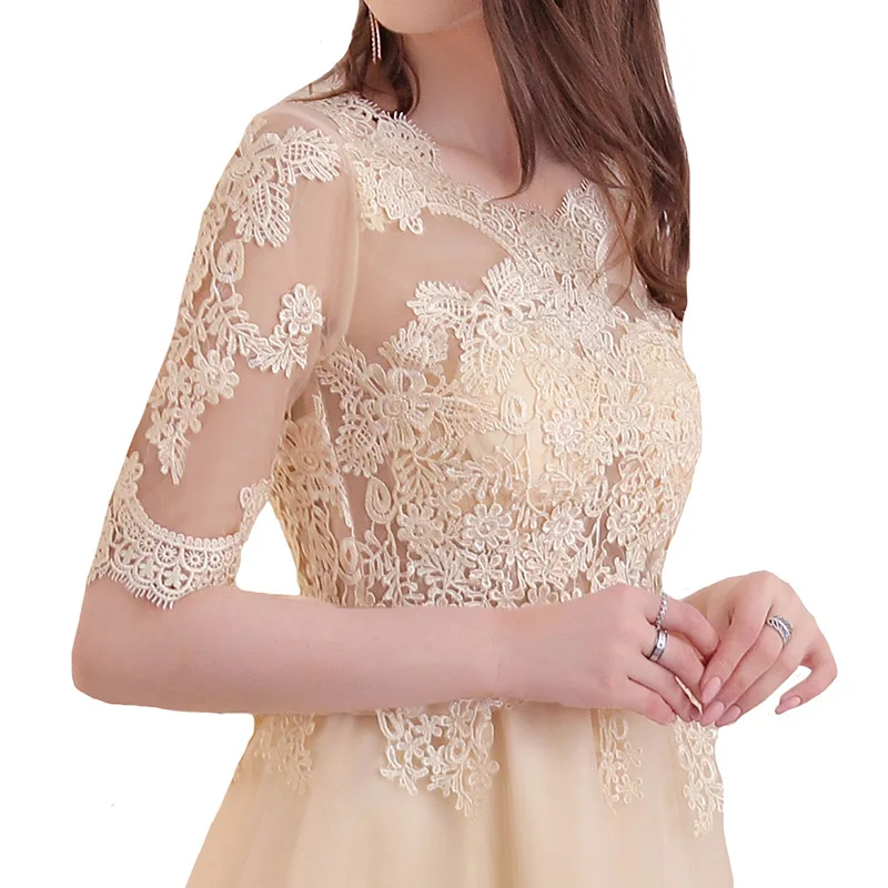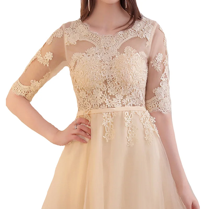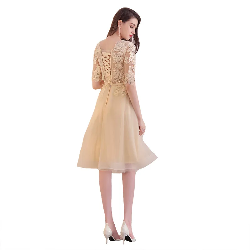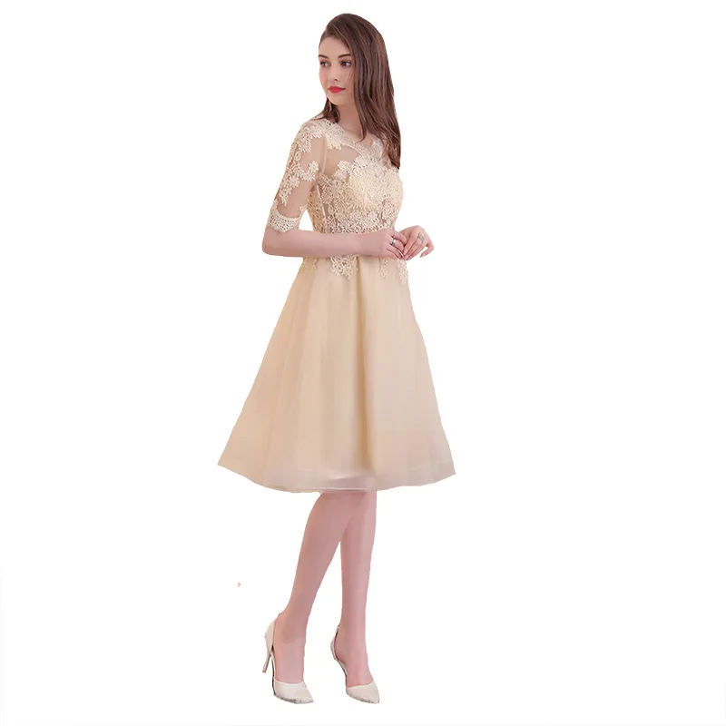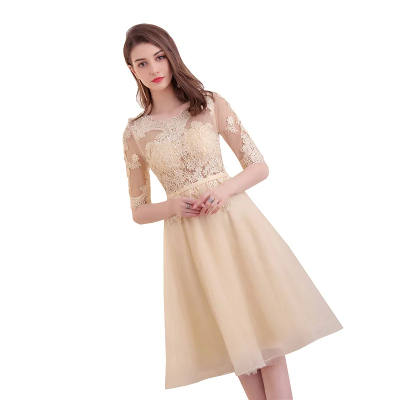 שמלת נשף לנשים עם אפליקציות וחצי שרוול אלגנטית ומיוחדת, גובה ברך