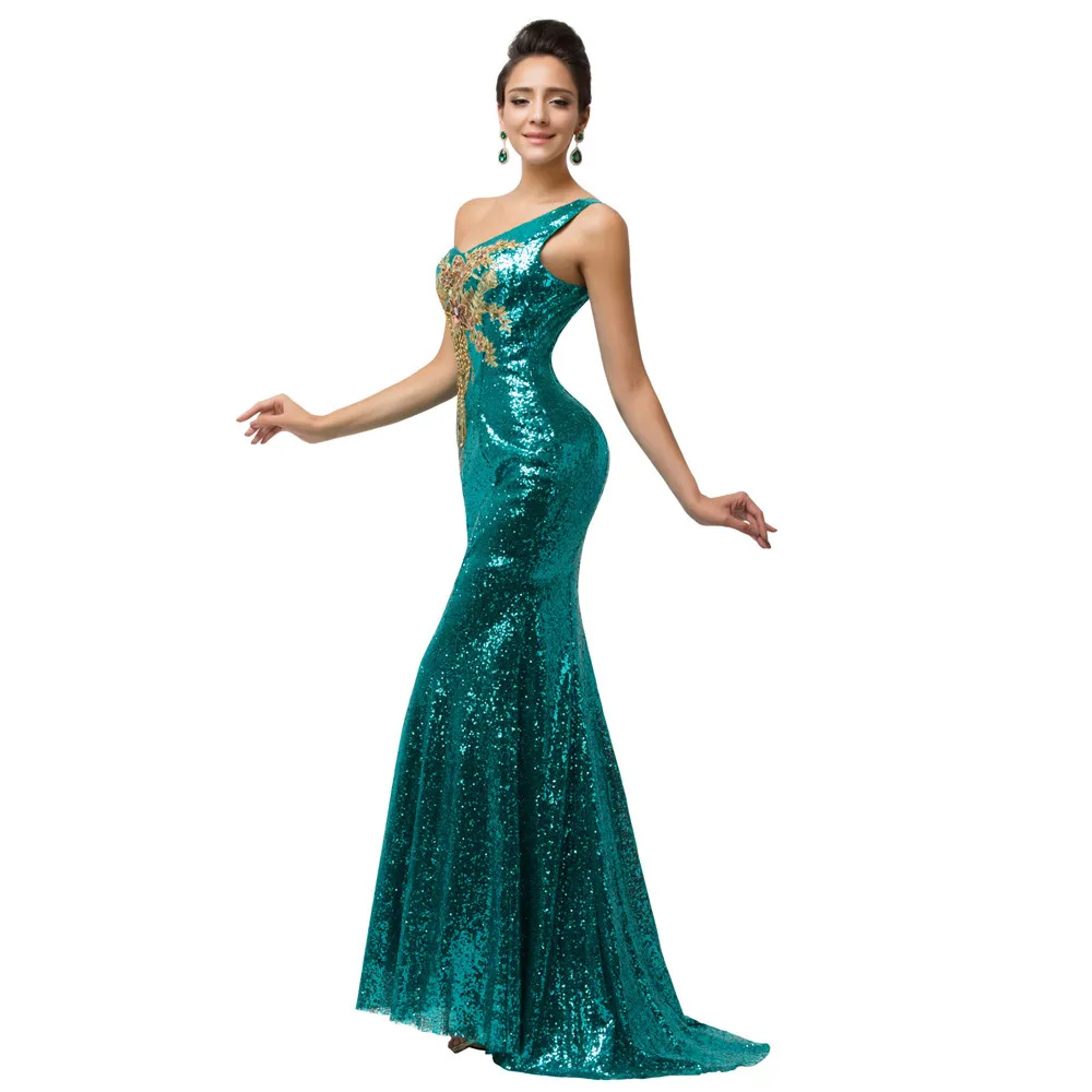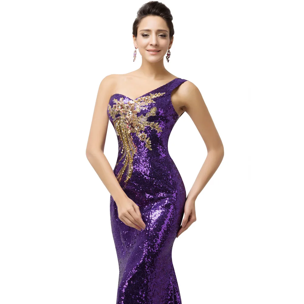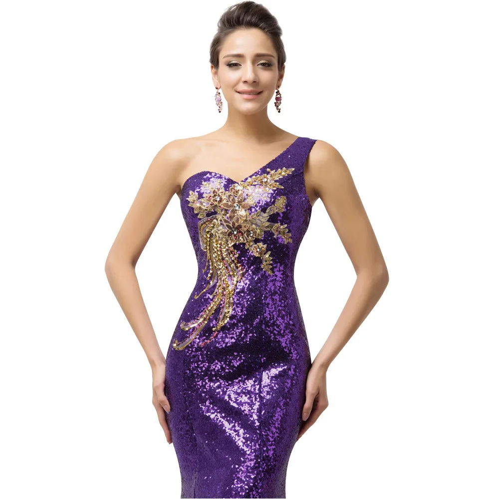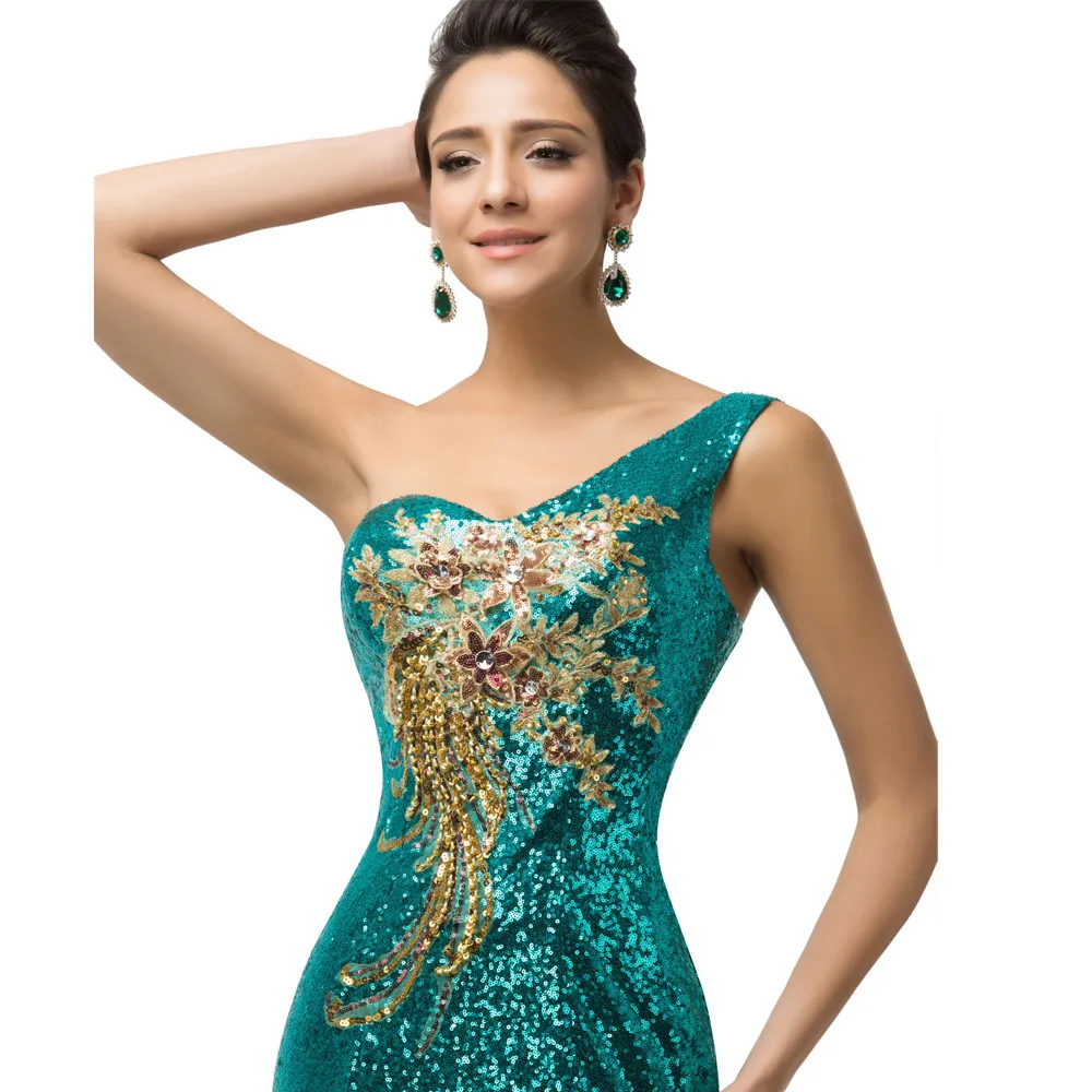 שמלת ערב פייטים לנשים כתף אחת בסגנון בת ים נוצצת במיוחד עם הדפס אפליקציה מהממת. מידות נשים 2-16