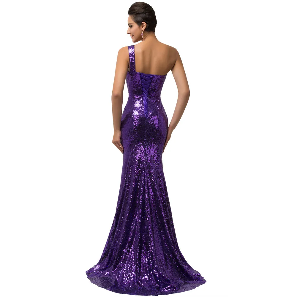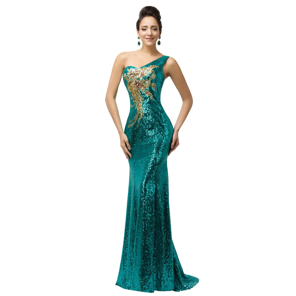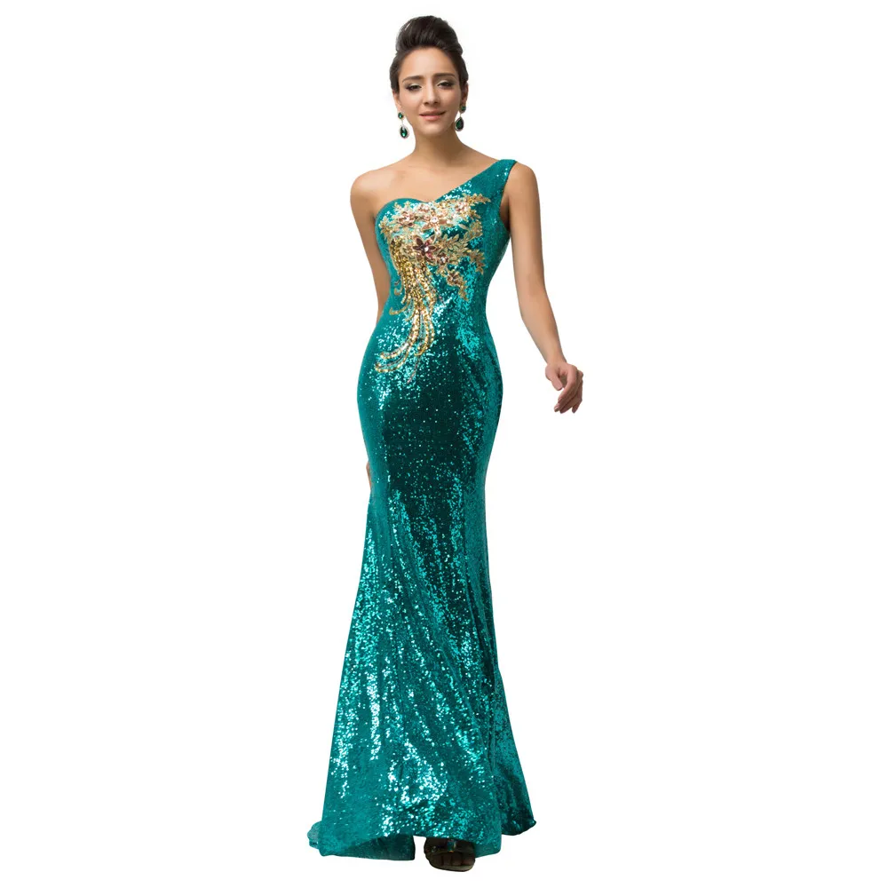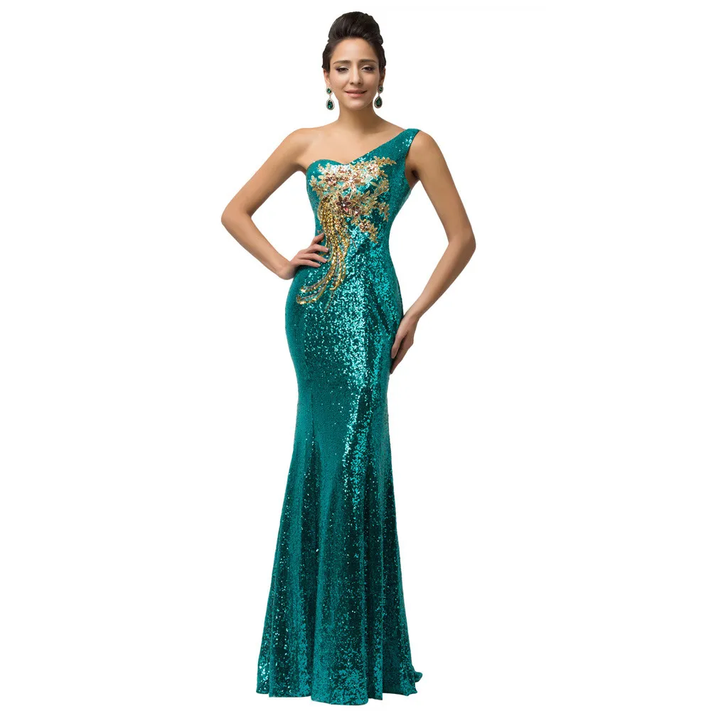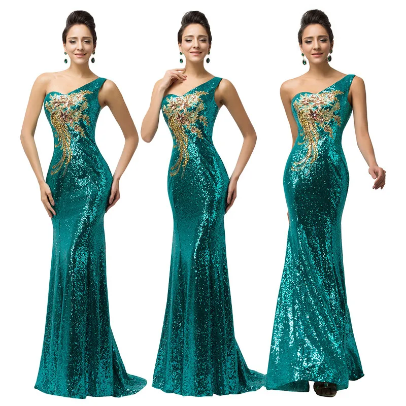 שמלת ערב פייטים לנשים כתף אחת בסגנון בת ים נוצצת במיוחד עם הדפס אפליקציה מהממת. מידות נשים 2-16