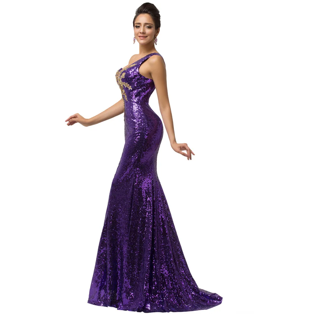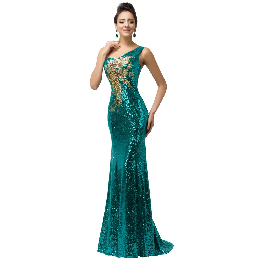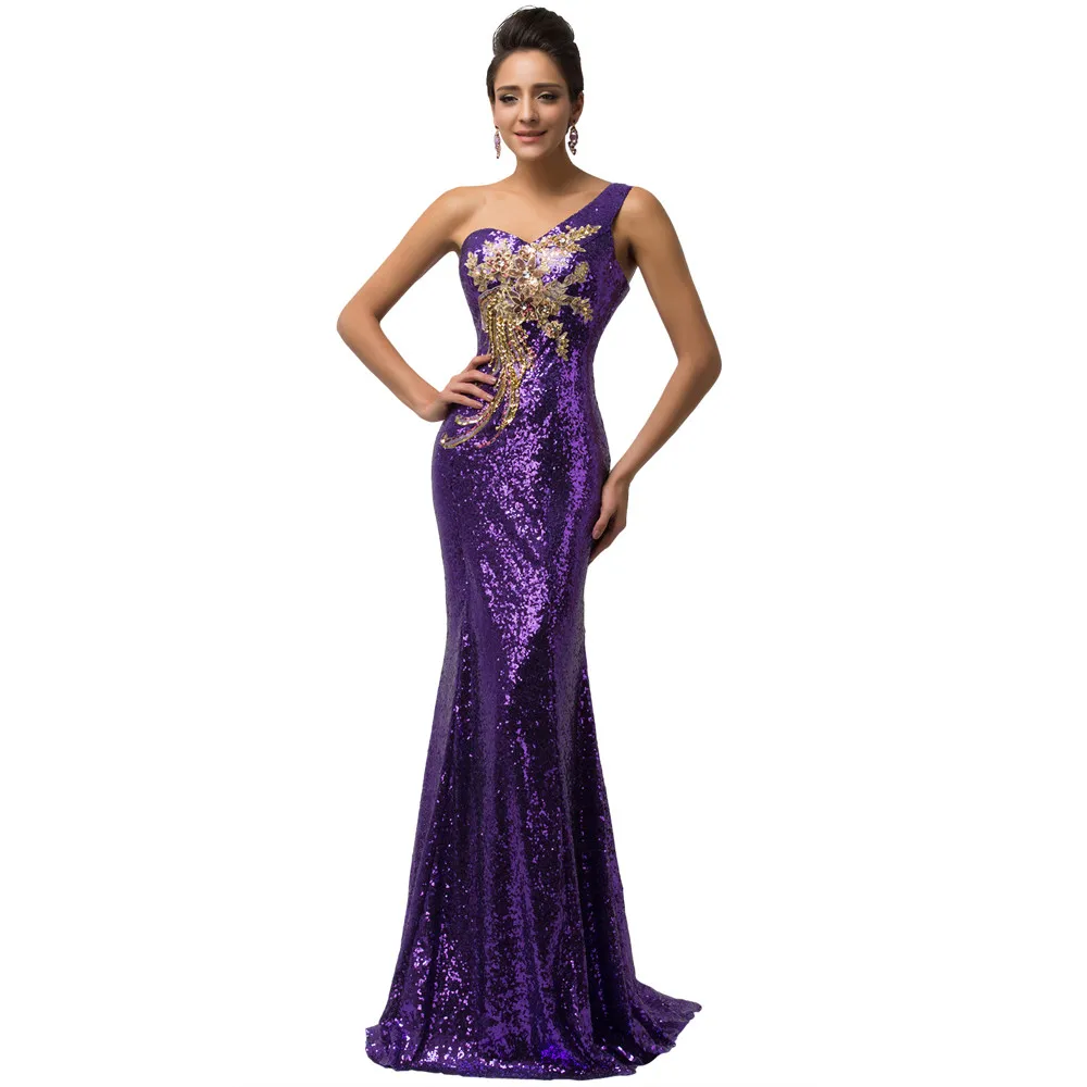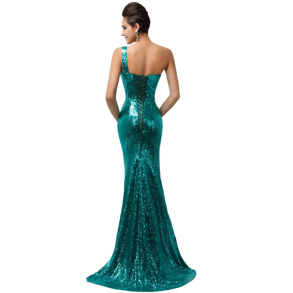 שמלת ערב פייטים לנשים כתף אחת בסגנון בת ים נוצצת במיוחד עם הדפס אפליקציה מהממת. מידות נשים 2-16