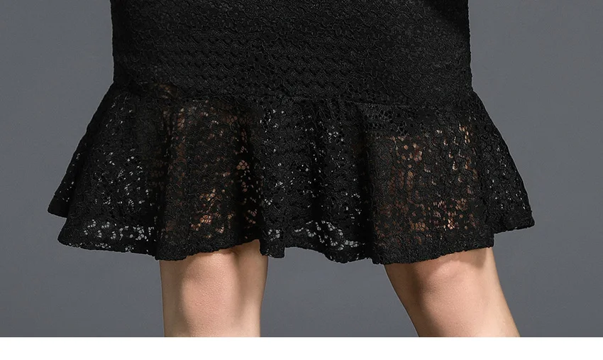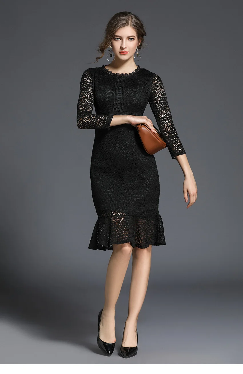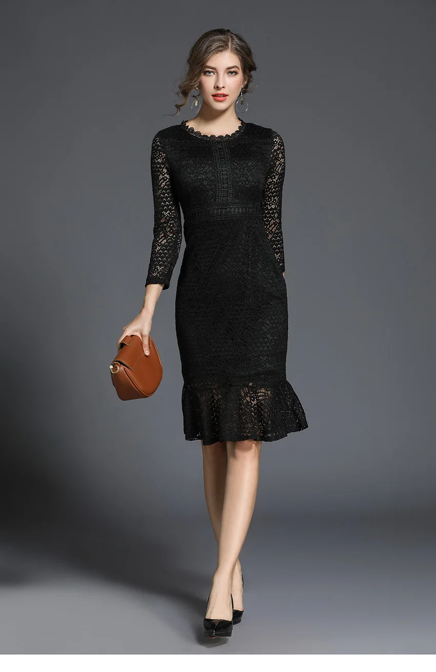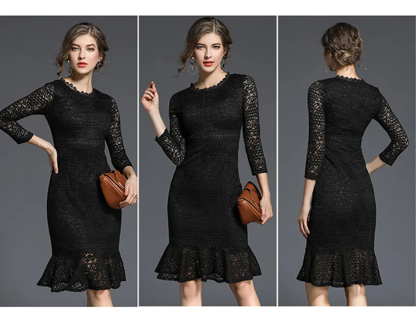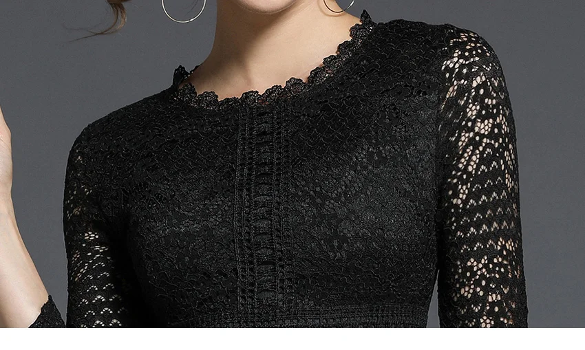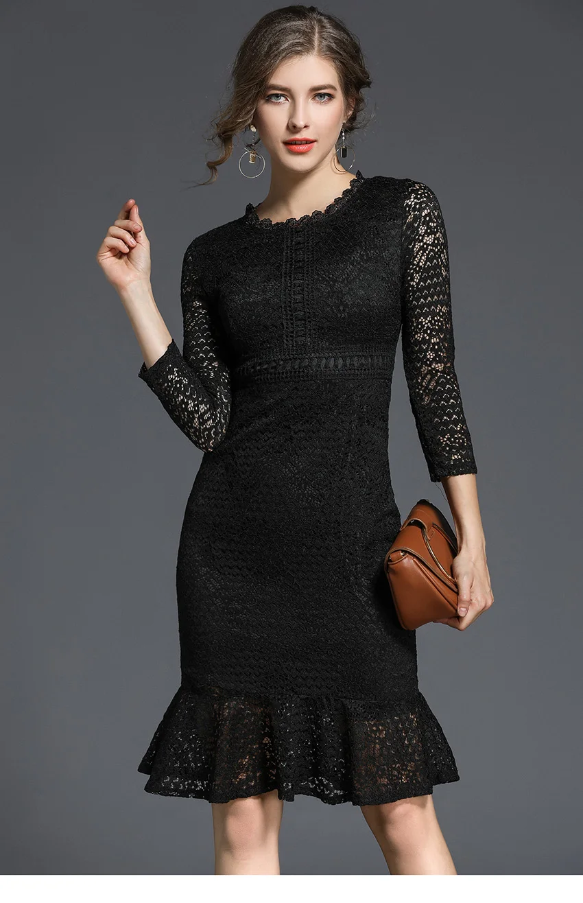 שמלת ערב תחרה חלולה לנשים דקה וקלילה שרוול 3/4 – פגז!