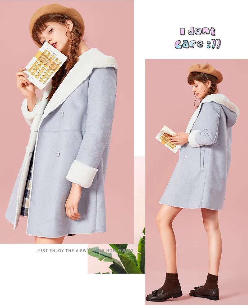 מעיל צמר ארוך ומחמם לנערות, פוליאסטר עם פרווה בפנים ועור הפוך בחוץ בצבעים שונים